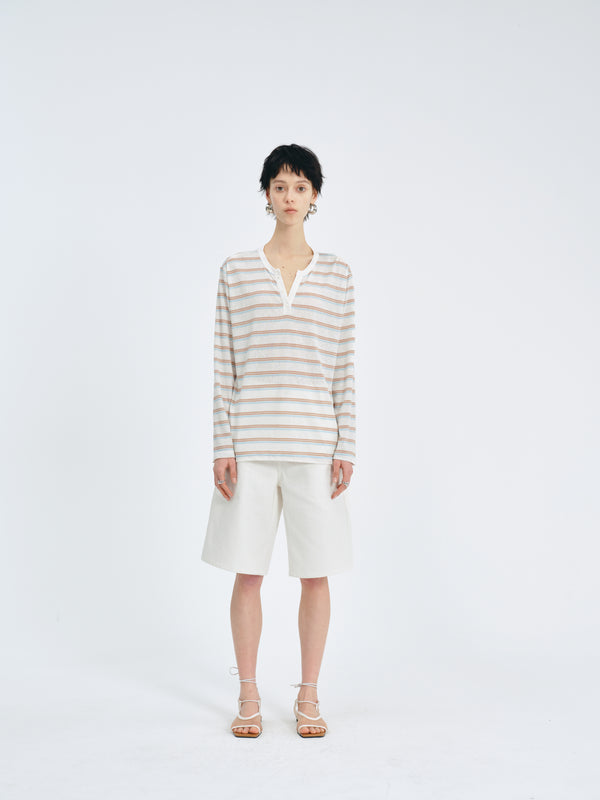 A striped knit with a scissor collar—effortless yet elevated.