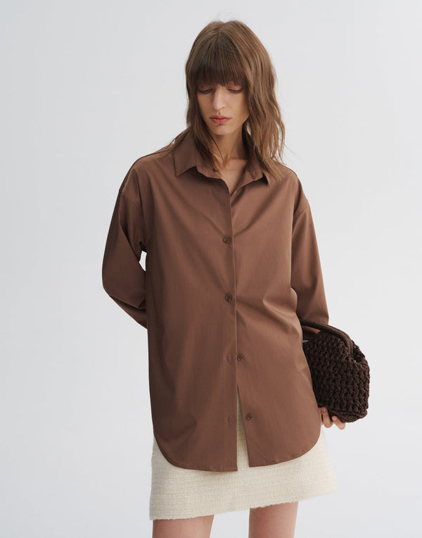 Übergroßes Hemd mit skulpturalen Falten und mit Kräutern angereicherten Fasern für mehr Komfort.