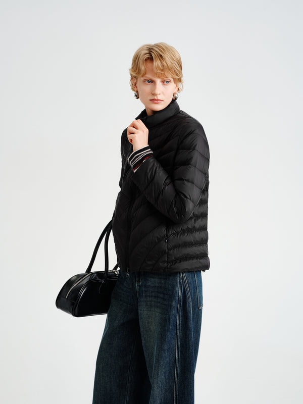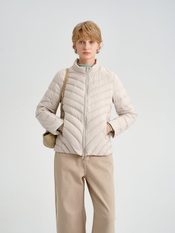 Drift / Chevron down jacket with light structure and everyday ease.