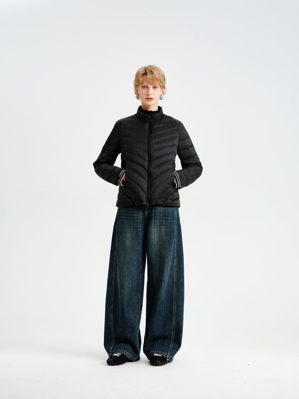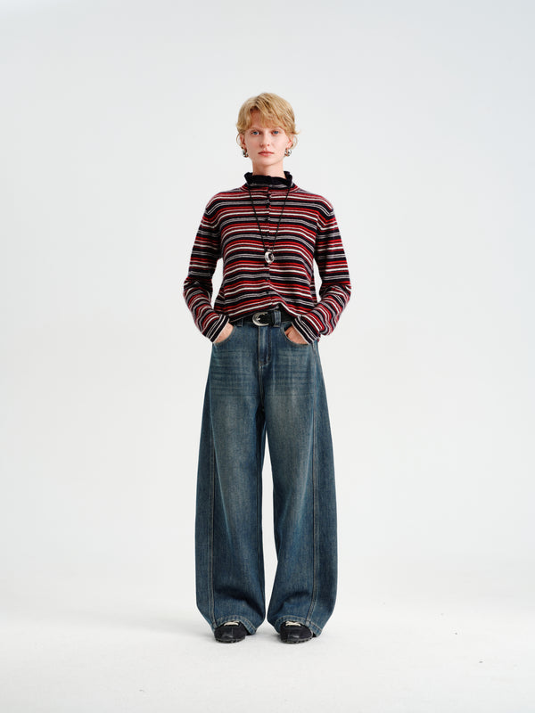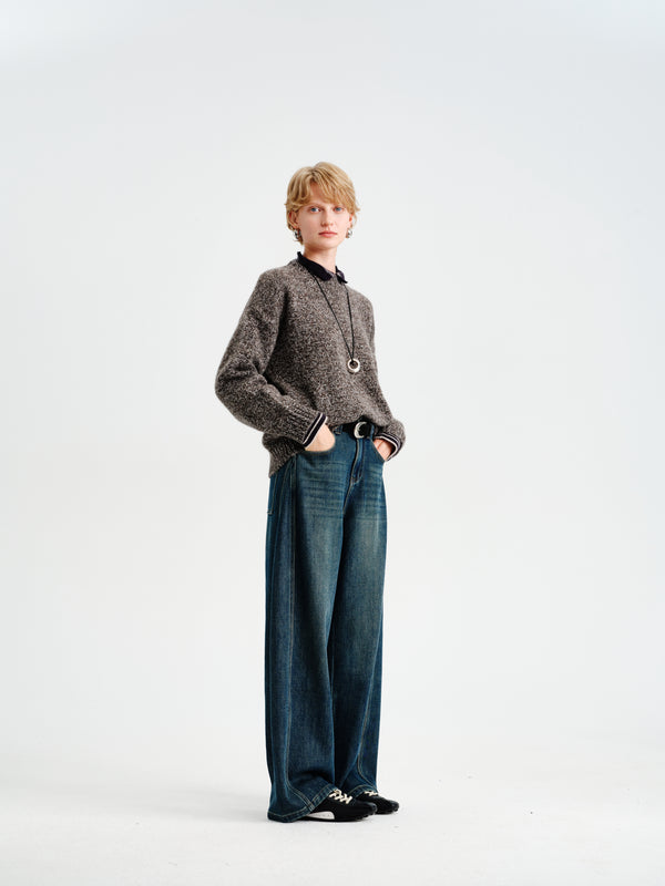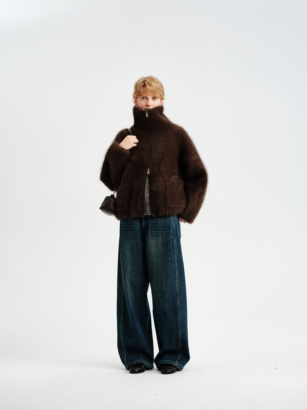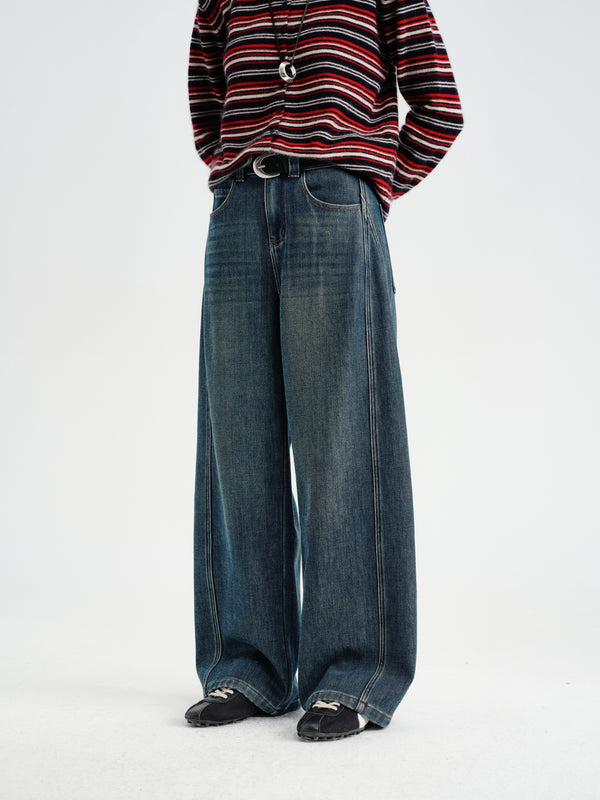 Cocoon-cut wide-leg jeans in heavy, brushed denim with deconstructed seams.