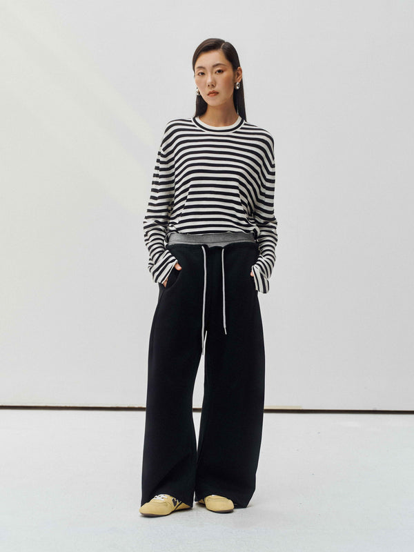 Striped knit tee with relaxed silhouette and soft, fluid drape.