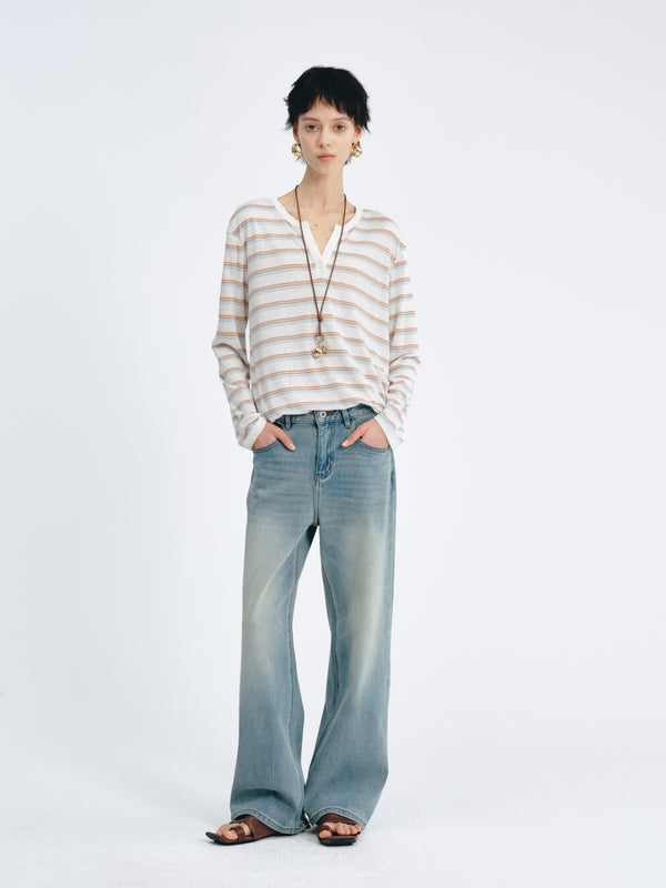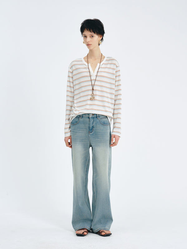A timeless high-waisted denim with a relaxed fit—vintage touch, flattering lines.