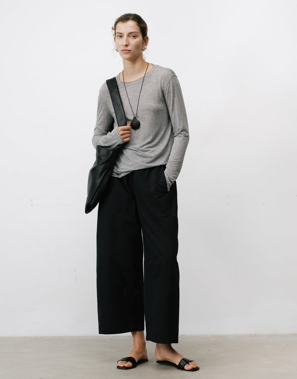 ドローストリングウエストと快適なコットン・ナイロン混紡素材のハイライズバルーンパンツ。