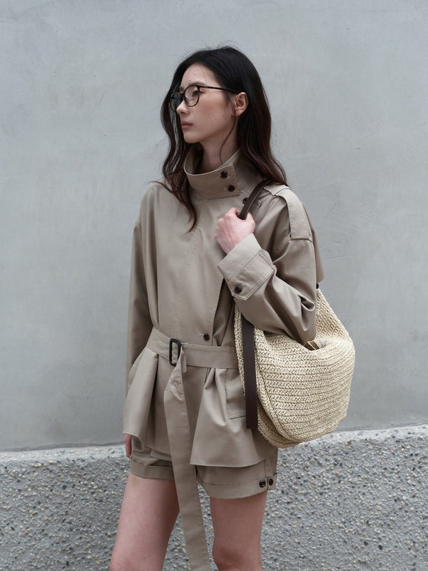 Relaxed cotton-blend jacket with adjustable waist.