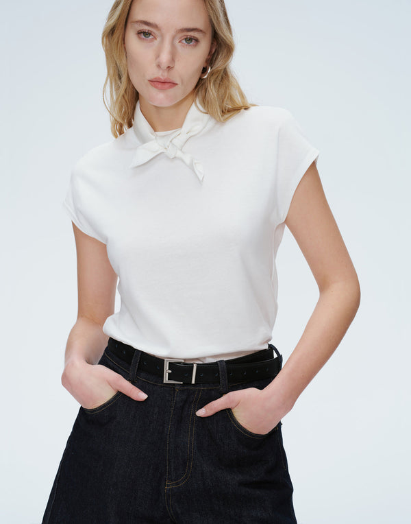 Refined ease — a summer tee with cap sleeves that flatter and flow.