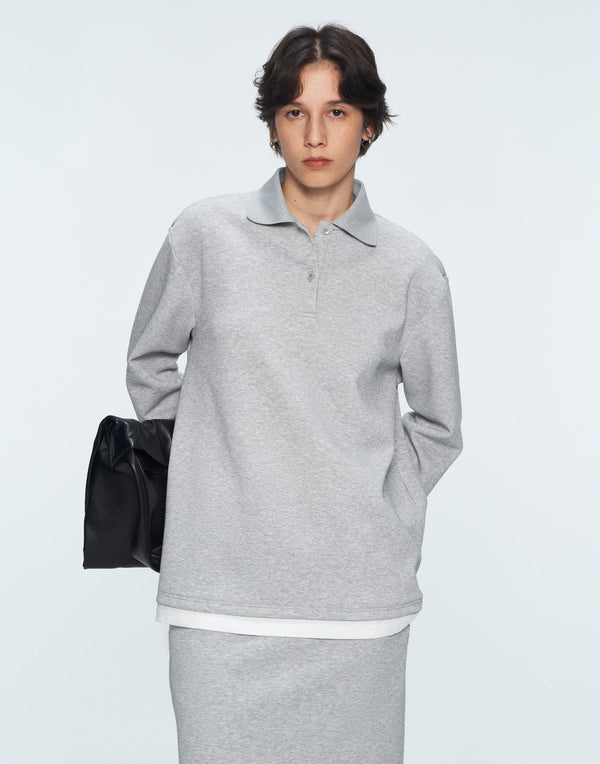 Sport meets ease — a polo sweatshirt with breathable pique knit and modern drop shoulders.