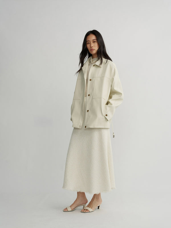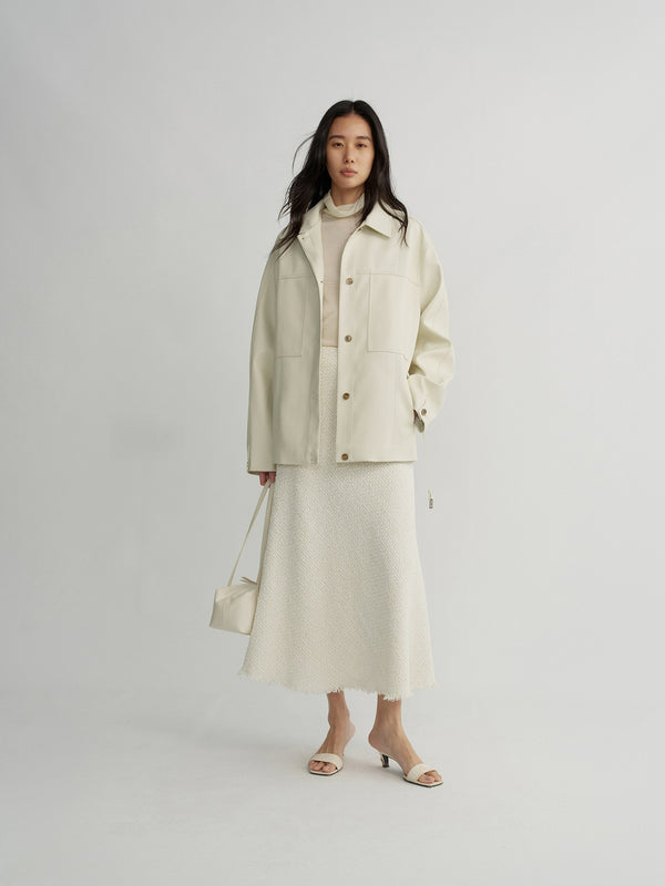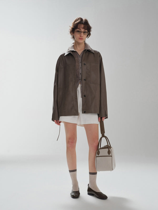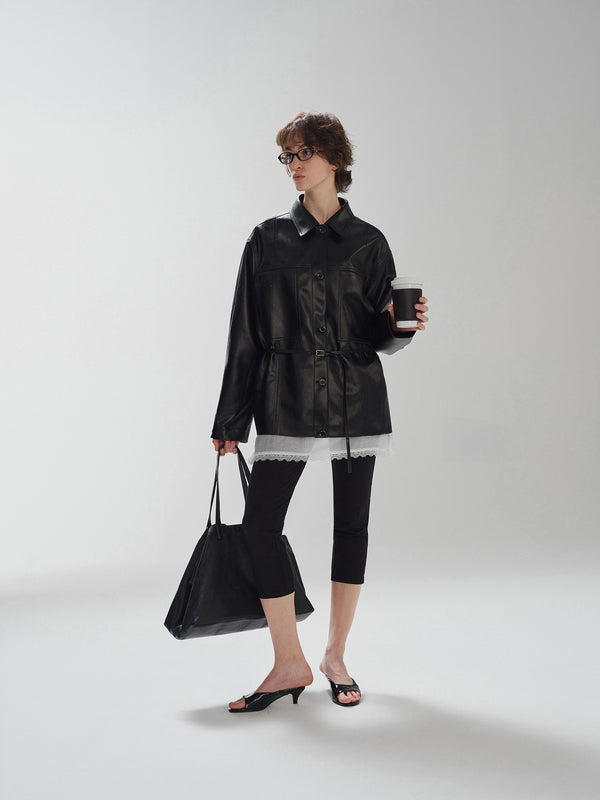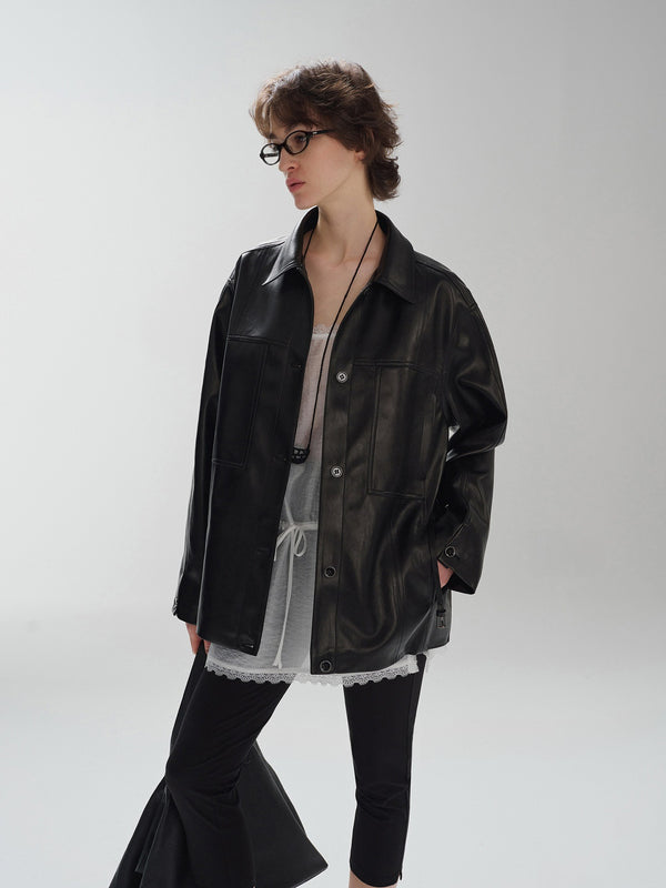 Oversized leather jacket made from soft PU with a minimalist design.
