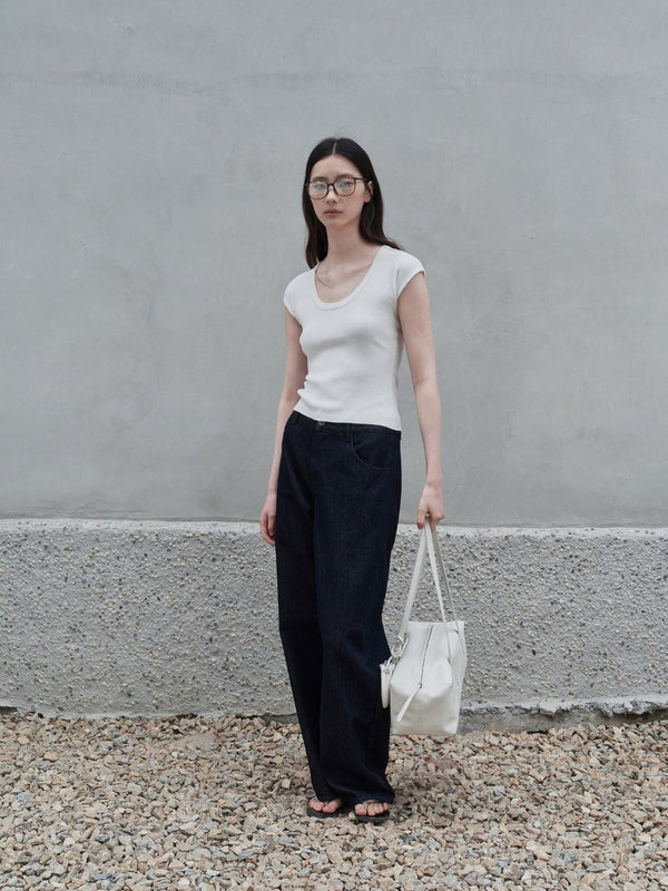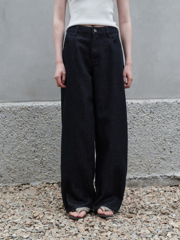 Relaxed fit denim pants with wide-leg silhouette and comfortable rise.