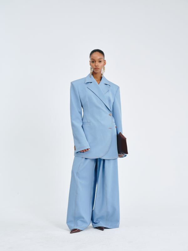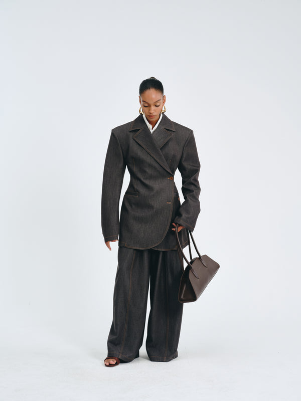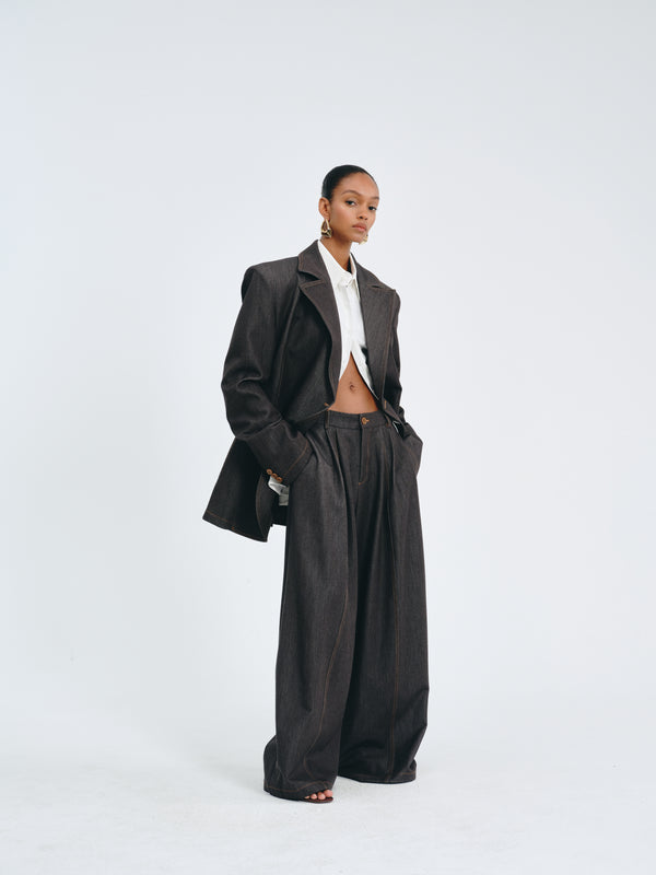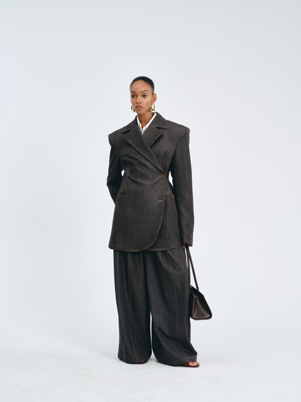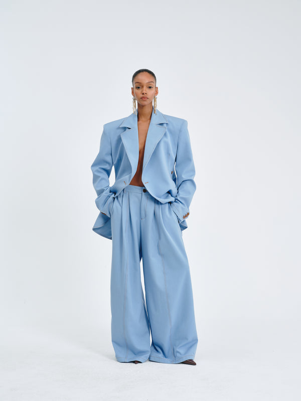 Bold shoulders, relaxed silhouette—modern tailoring.