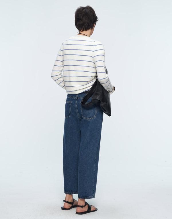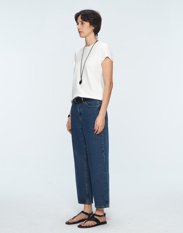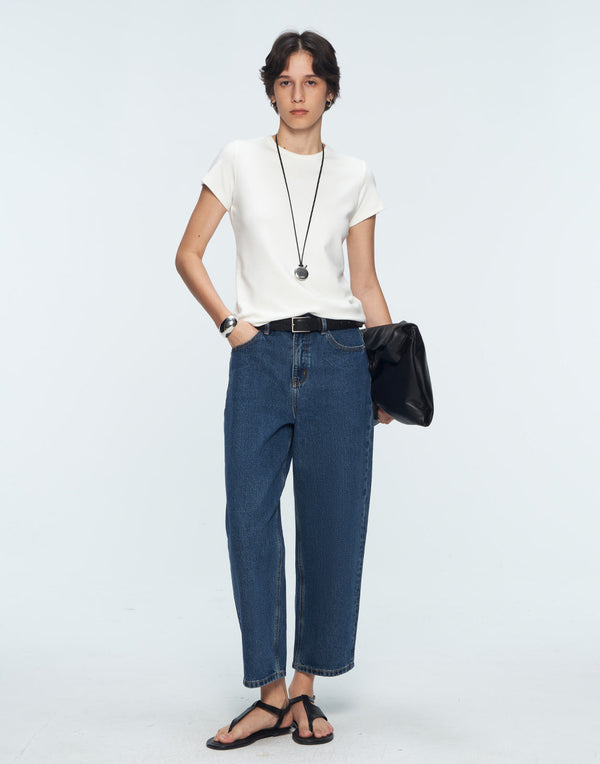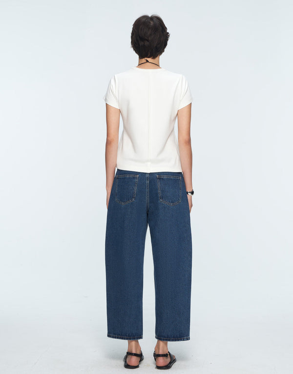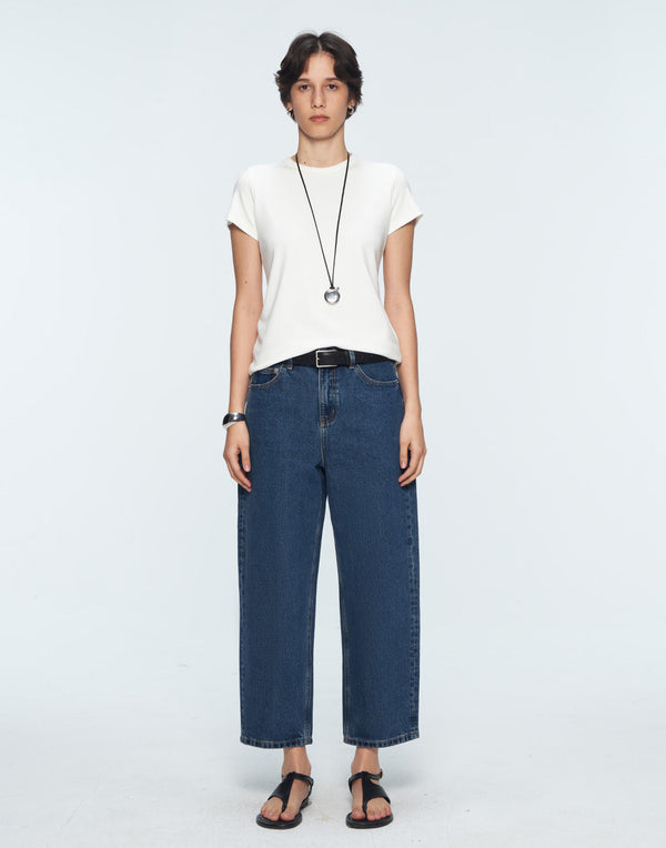 Curved wide-leg denim with a modern cropped cut—effortless polish in motion.