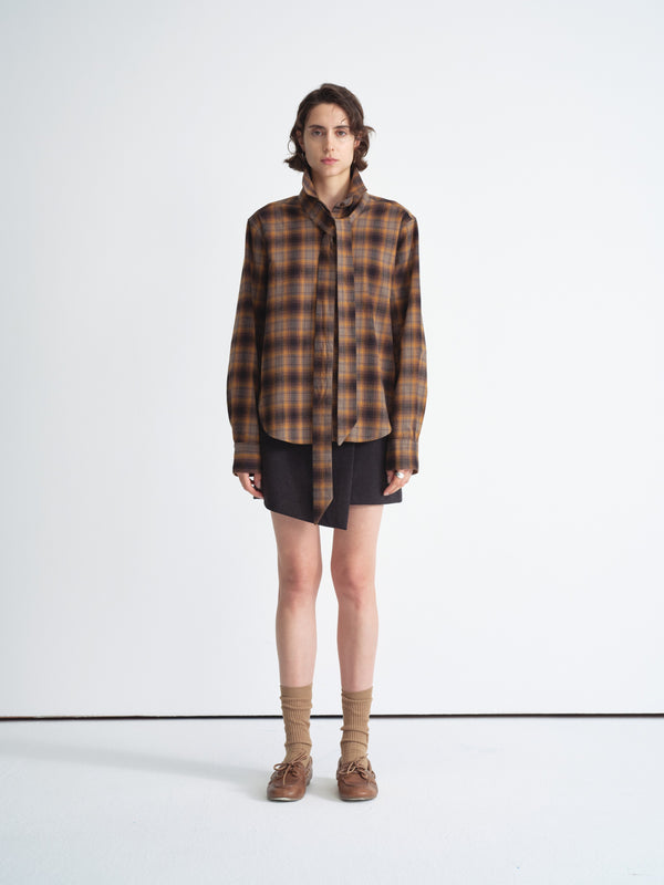 Plaid cotton shirt with detachable tie detail—soft brushed finish, relaxed fit, and versatile styling.