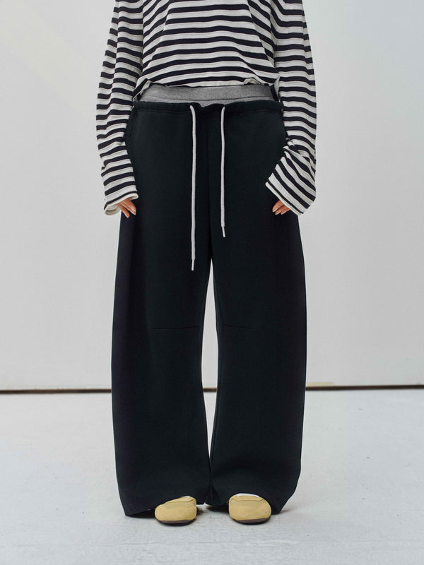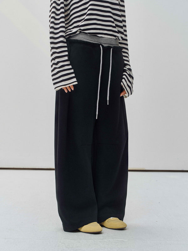 Relaxed wide-leg pants with drawstring waist and structured comfort.