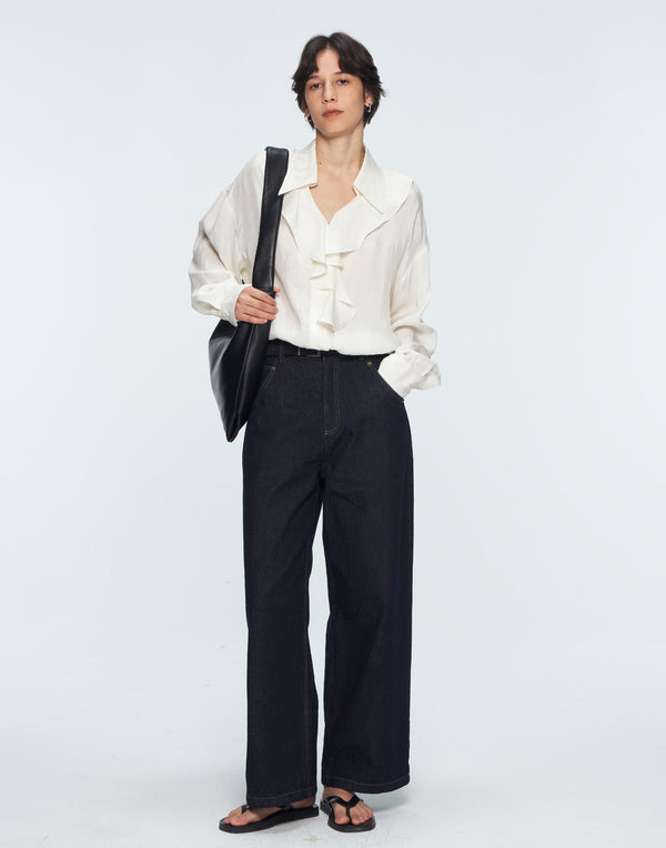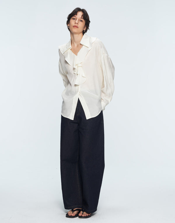 Romantic French-inspired blouse with ruffles—effortless elegance for work or weekend.