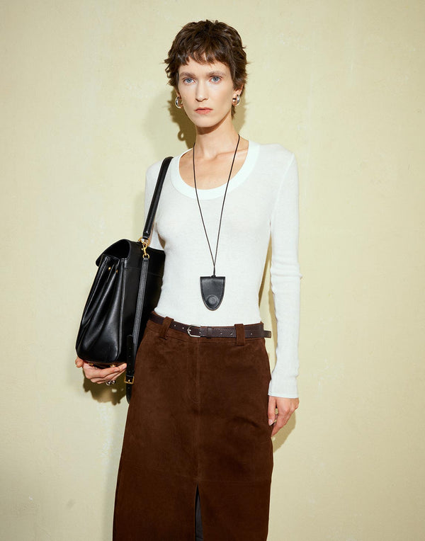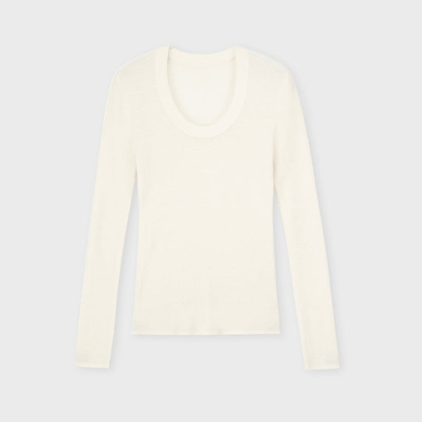 Merino wool U-neck top—soft, breathable warmth for effortless layering.