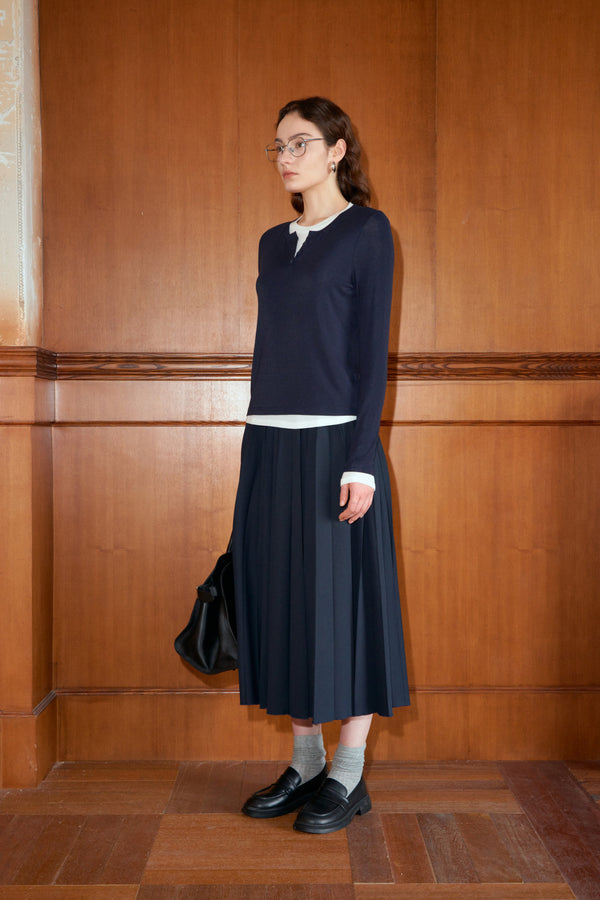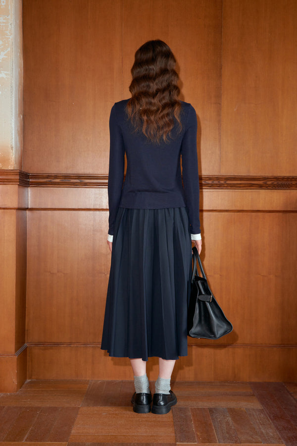 Slim-fit long-sleeve tee with layered two-in-one look and contrast details for a modern edge.