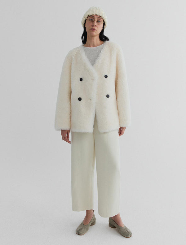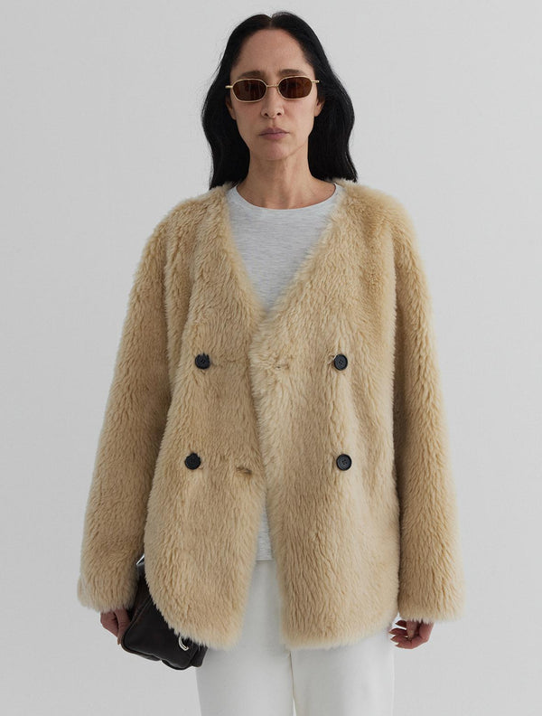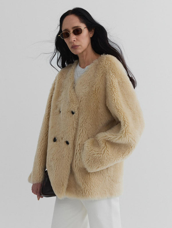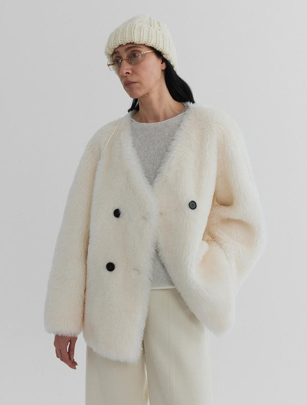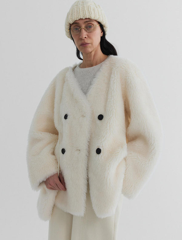 Pure wool teddy, softened into a clean, collarless silhouette.
