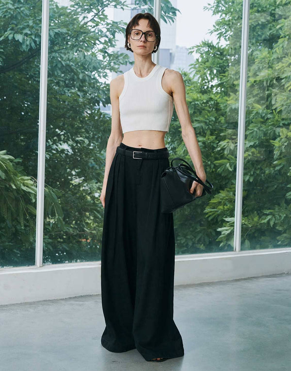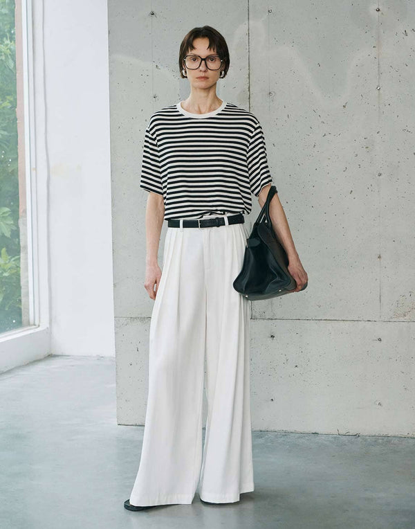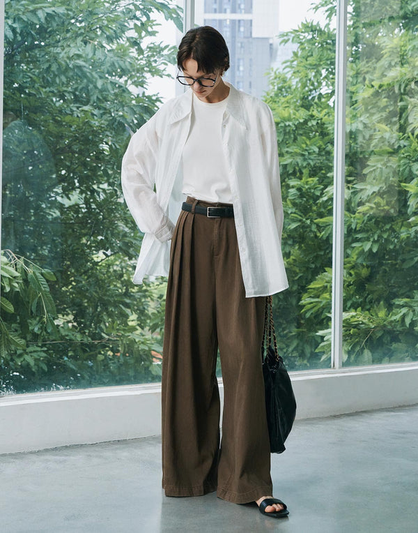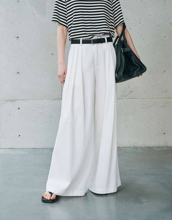 Wide-leg lyocell-cotton pants—fluid comfort with a polished modern ease.