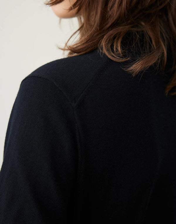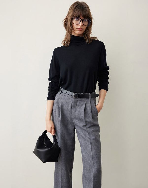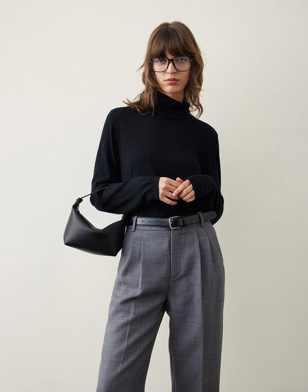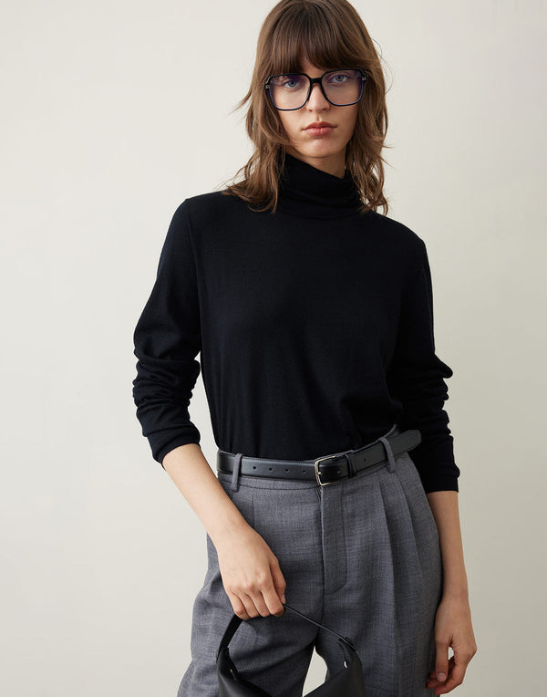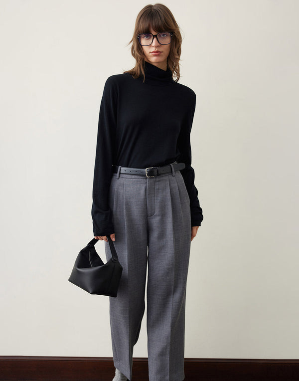 Merino wool mock-neck sweater—refined comfort with versatile styling ease.