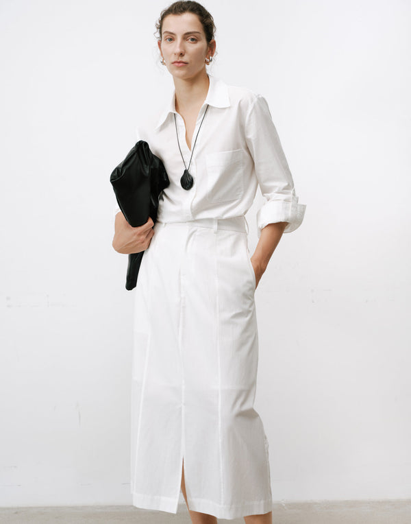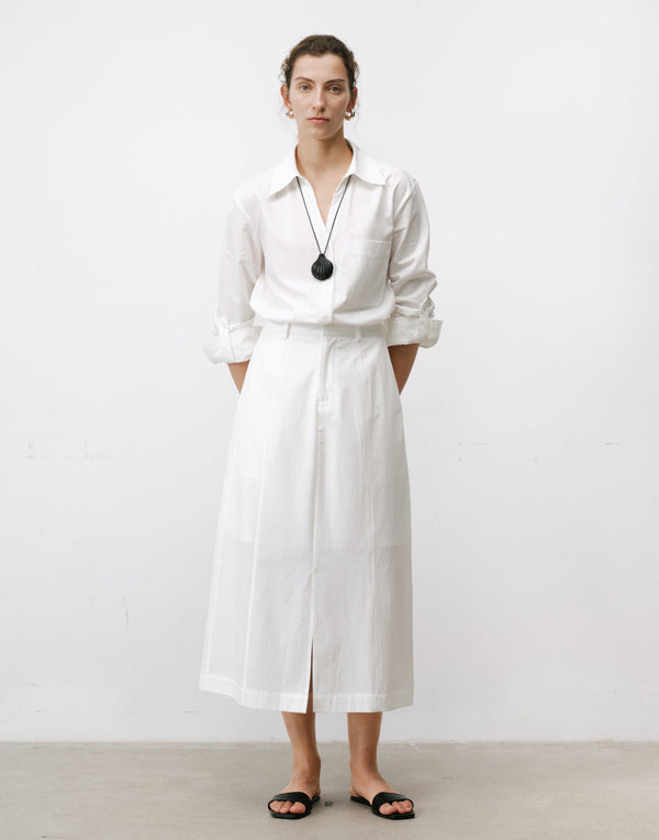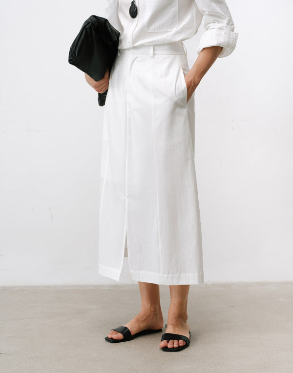 Minimalist A-line skirt—clean lines meet deconstructed detail for modern elegance.