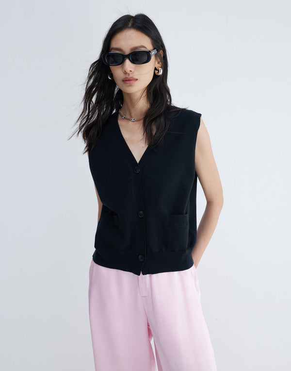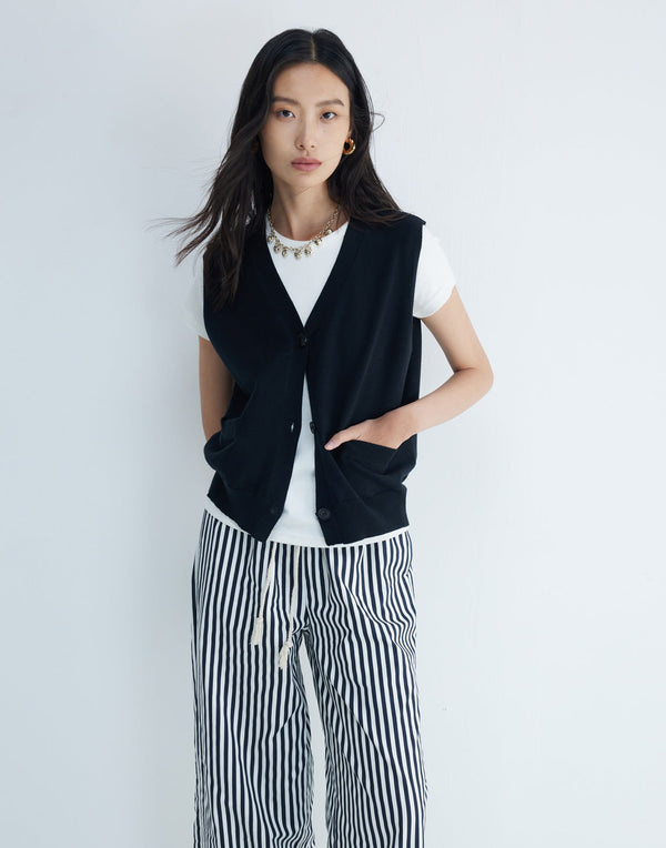 Minimalist knit vest—effortless layering with versatile polish across seasons.