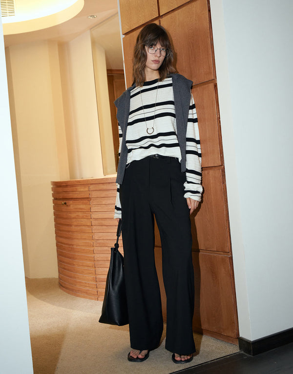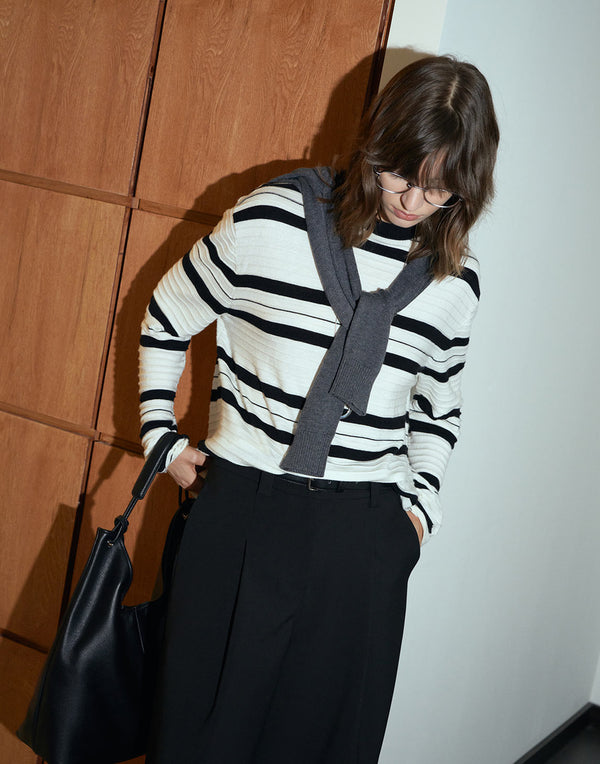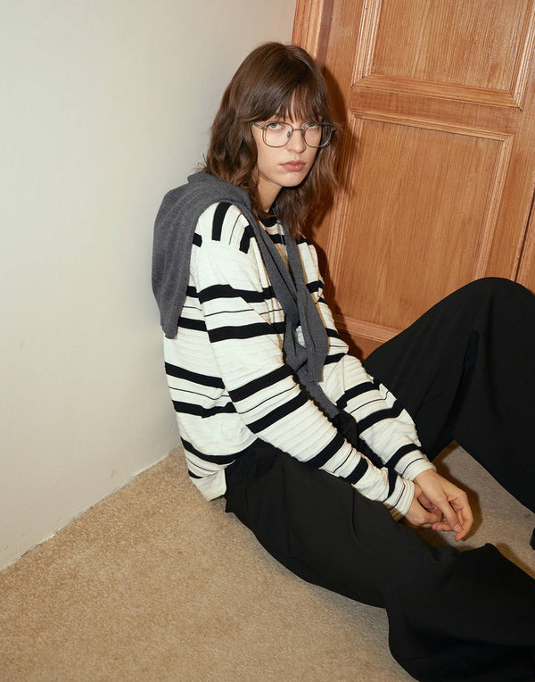 Striped crochet sweater—oversized, breathable, and modern with bold contrast.