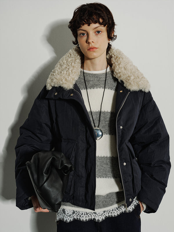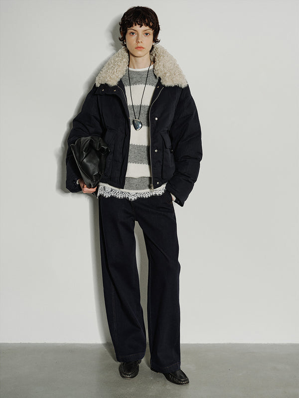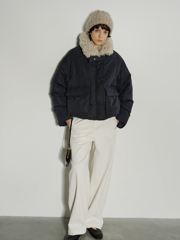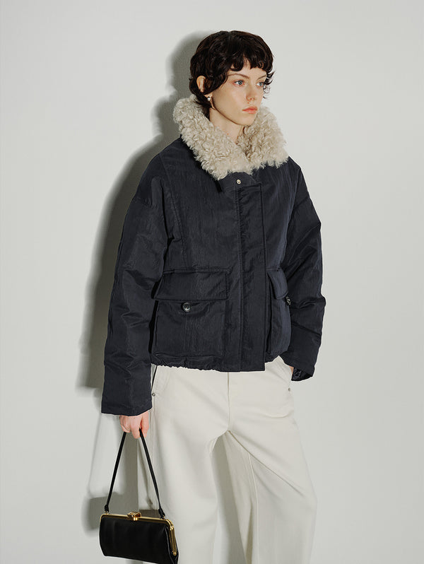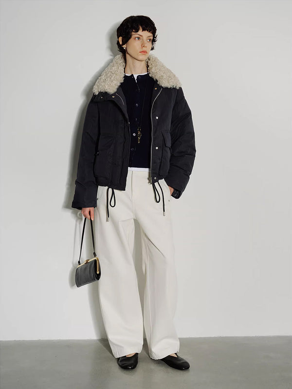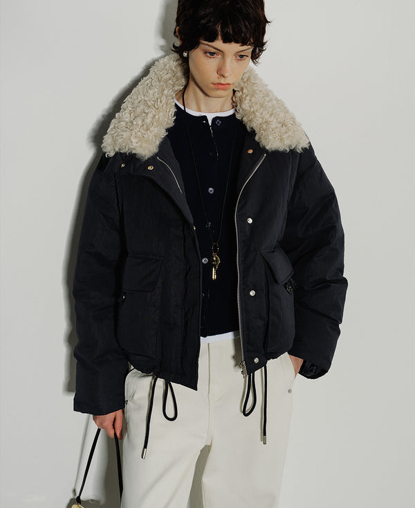 Practical minimalism, warmed—built with a clean silhouette, a removable plush collar, and steady down-filled comfort.