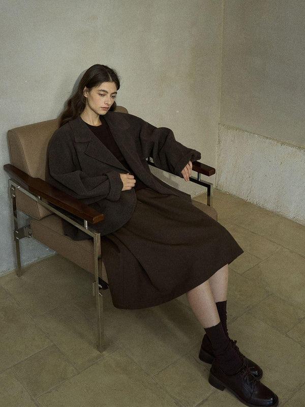 Pure wool overcoat with double-faced structure and refined drape.