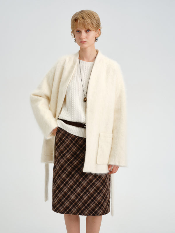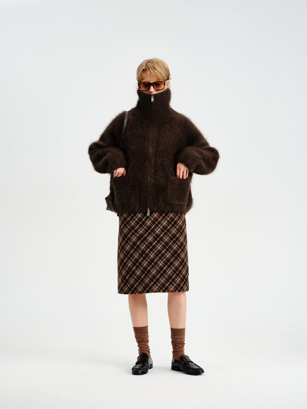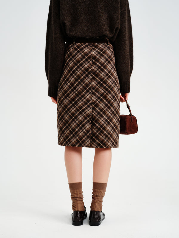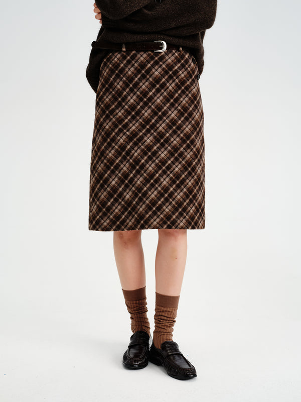 Vintage check, bias-cut flow—clean length, quiet ease.