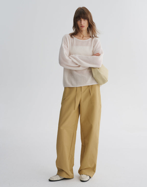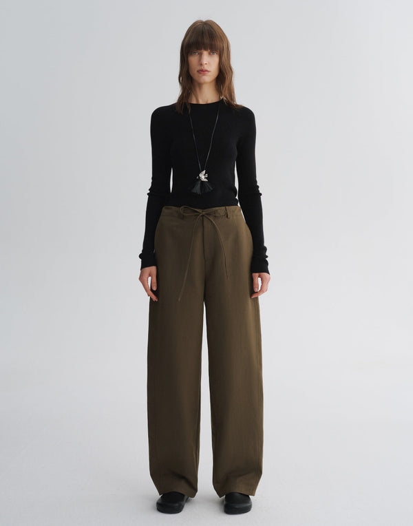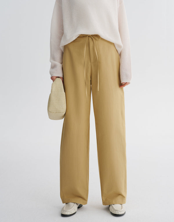 Relaxed yet refined — drawstring wide-leg trousers with soft structure.