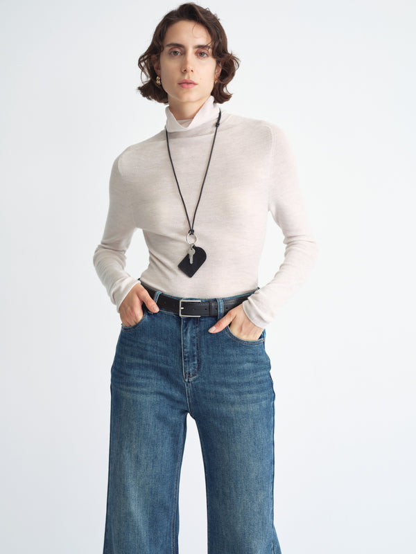 Ribbed Knit Long-Sleeve Top-Turtleneck