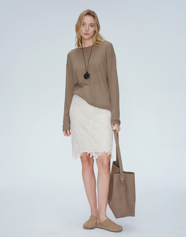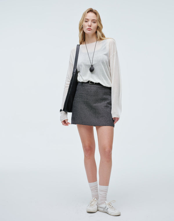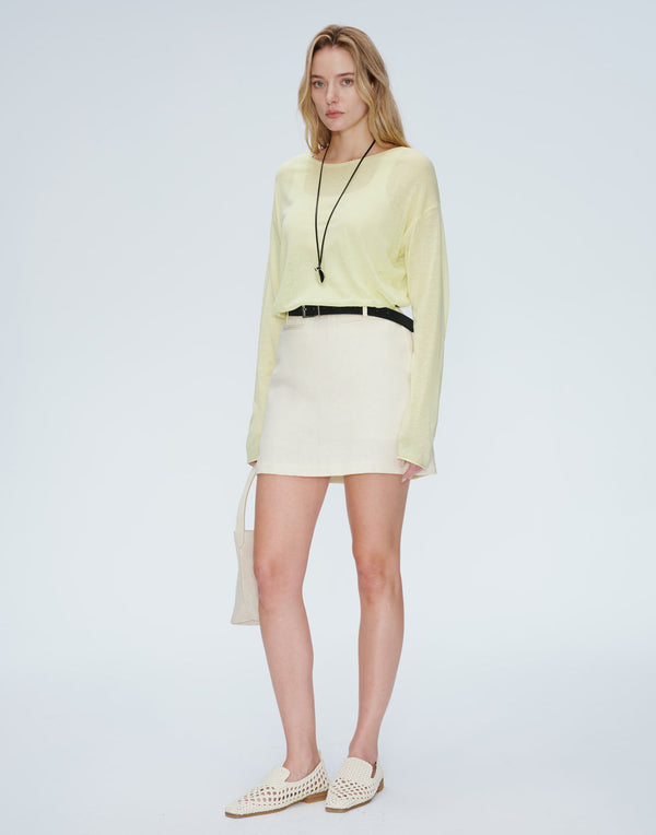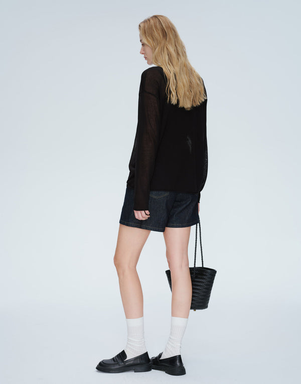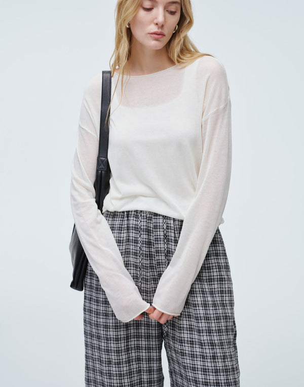 Relaxed knit with rolled edges — soft texture, modern H-line fit.