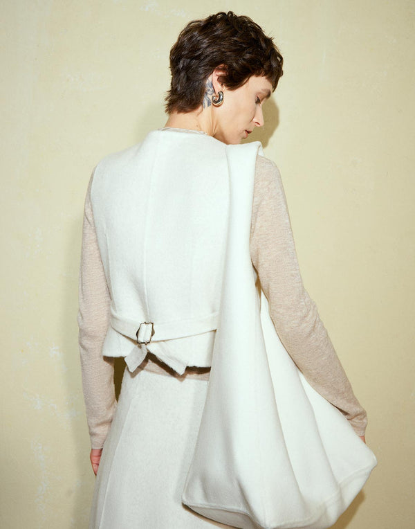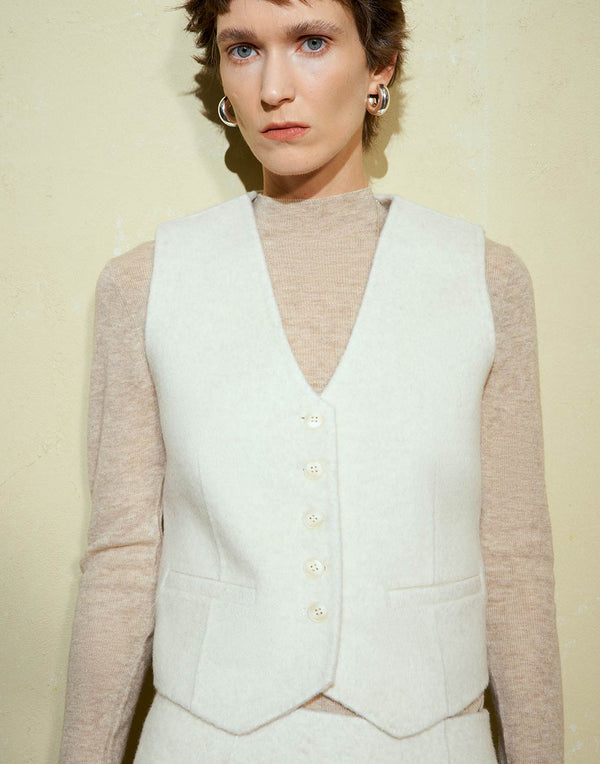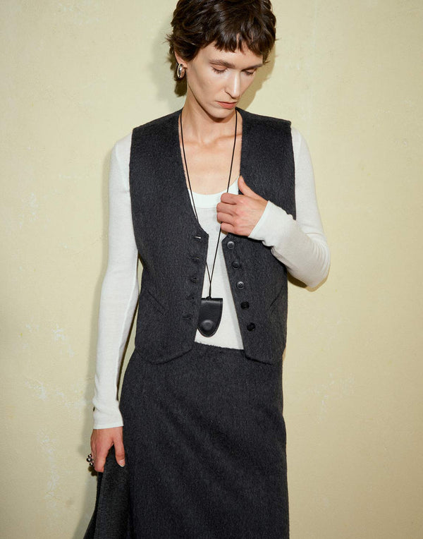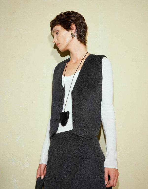 This cropped wool-camel hair waistcoat blends warmth with breathability.