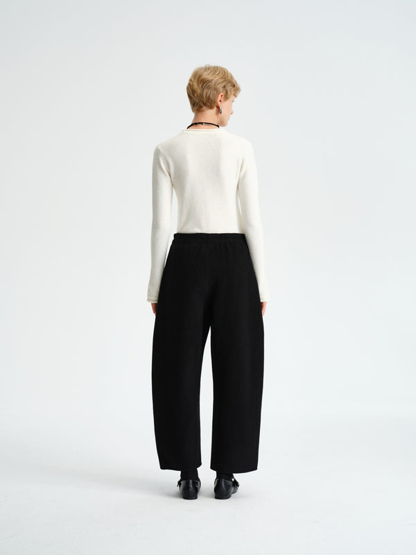 Textured wool-blend knit top with flared sleeves and cutout detail.