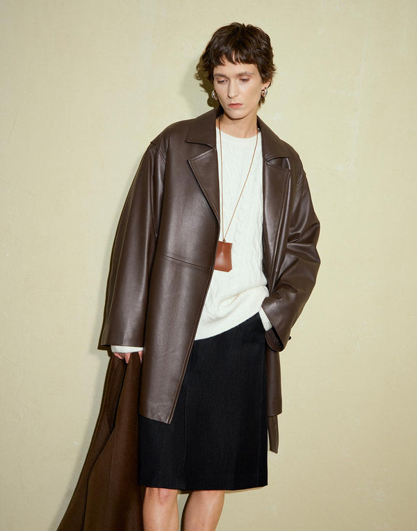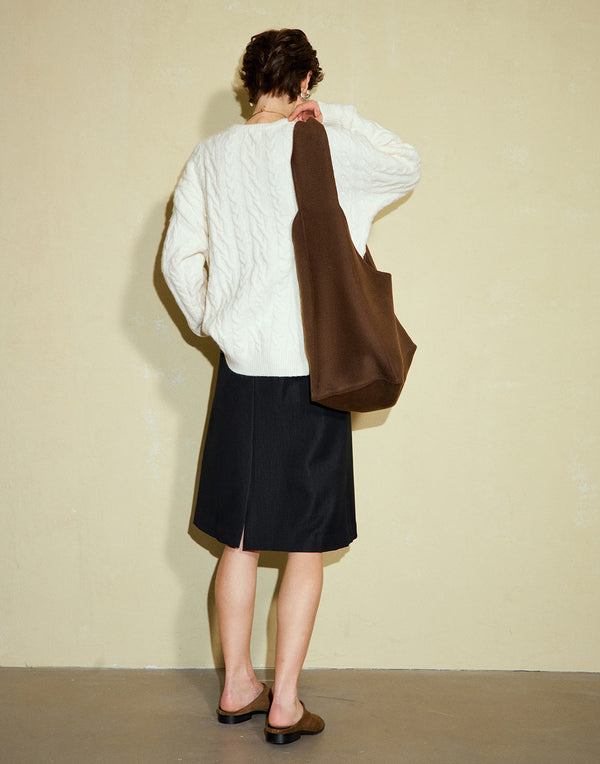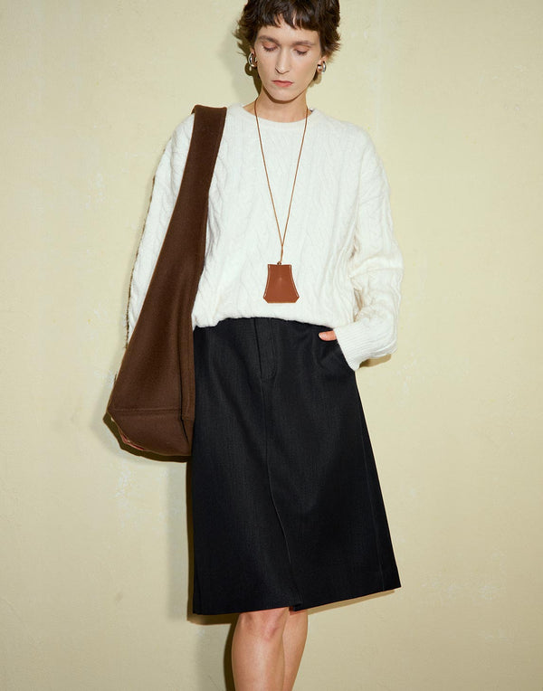 Versatile mid-calf skirt with flattering fit and subtle slit.