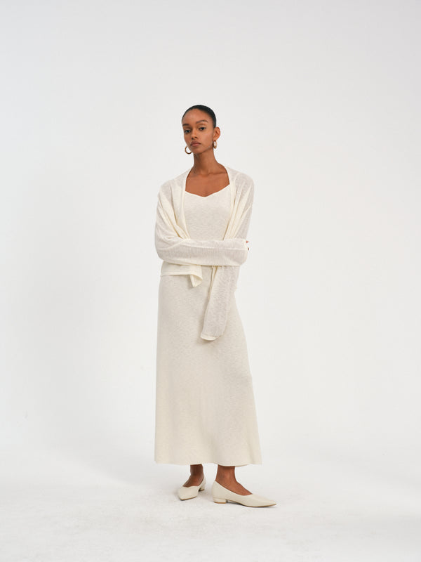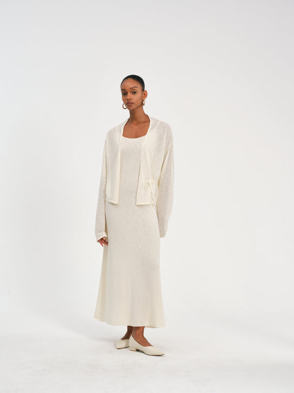 Lightweight tie-waist knit cardigan with breathable fabric and adjustable waist for a relaxed, flattering fit.