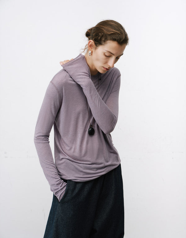 This relaxed pullover features a rolled collar and effortless drape.