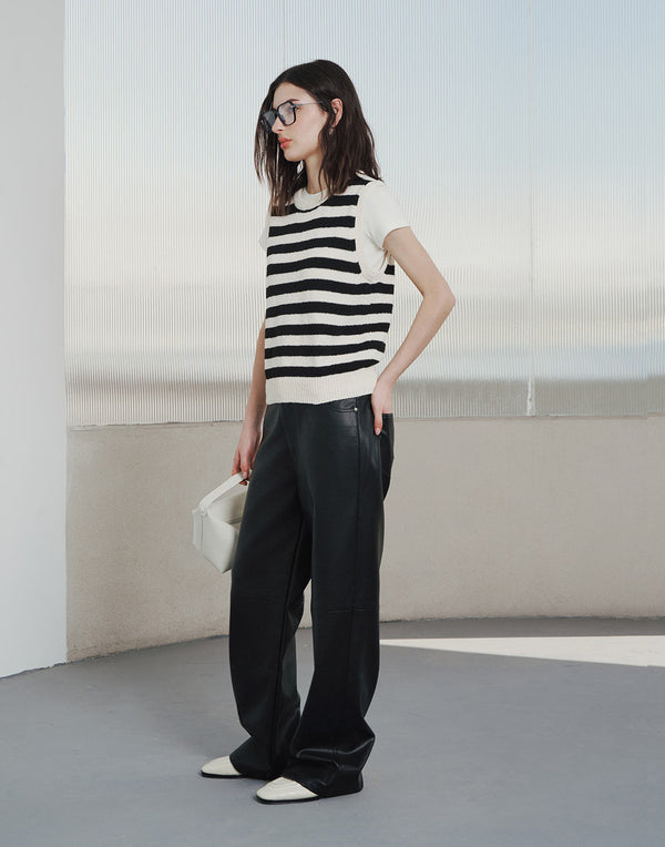 Faux leather trousers with sleek lines and a modern straight-leg fit.