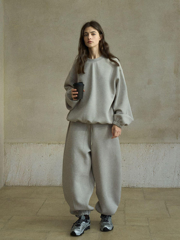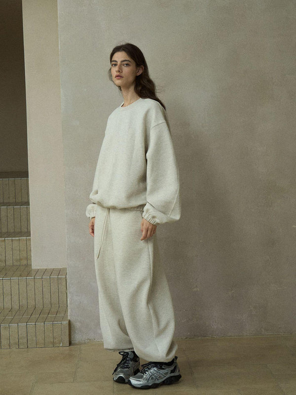 Jogger-style sweatpants with relaxed wide fit and structured silhouette.