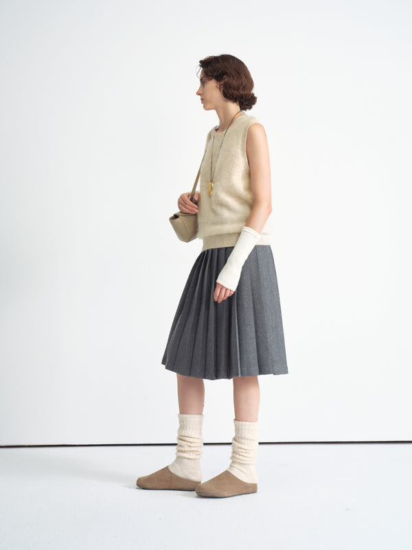 Classic cashmere vest with crew neck and clean fit—soft, lightweight, and versatile for autumn layering.